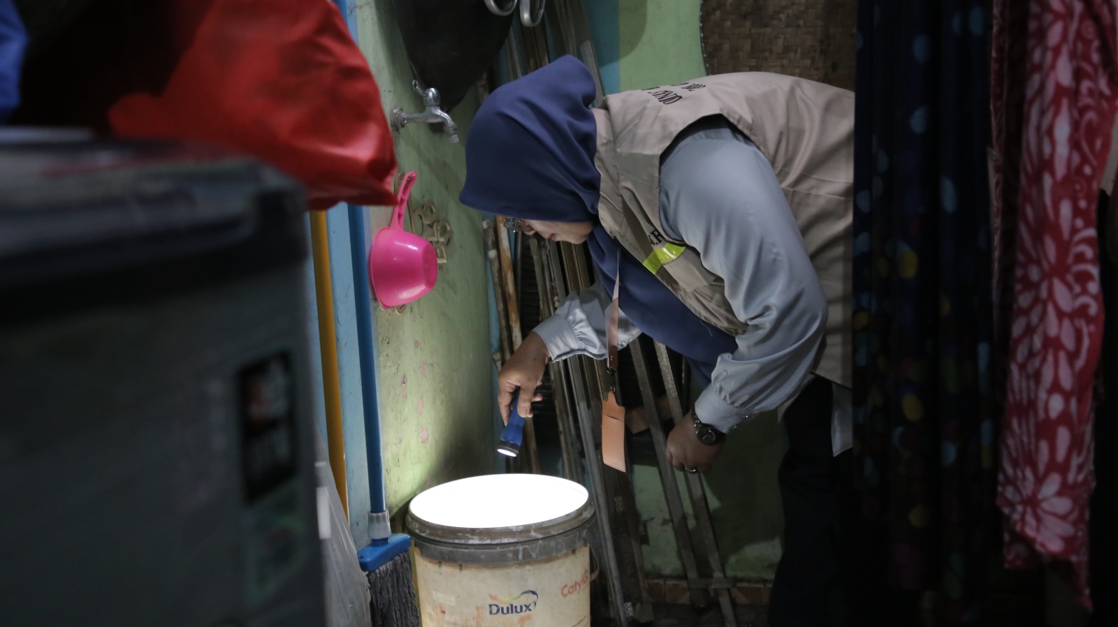 Kader Jumantik memeriksa rumah warga RW 15 Kelurahan Sukasari. Selain melihat jentik, juga para kader melakukan sosialisasi. TANGERANG.BNR–Kasus Demam Berdarah Dengue (DBD) di sejumlah wilayah di Indonesia mengalami peningkatan beberapa waktu belakangan. Sebagai upaya preventif dalam menangani kasus DBD di Kota Tangerang, Pemerintah Kota (Pemkot) Tangerang melalui Dinas Kesehatan memaksimalkan peran Kader Jumantik (Juru Pemantau Jentik) untuk melakukan sosialisasi di wilayah.