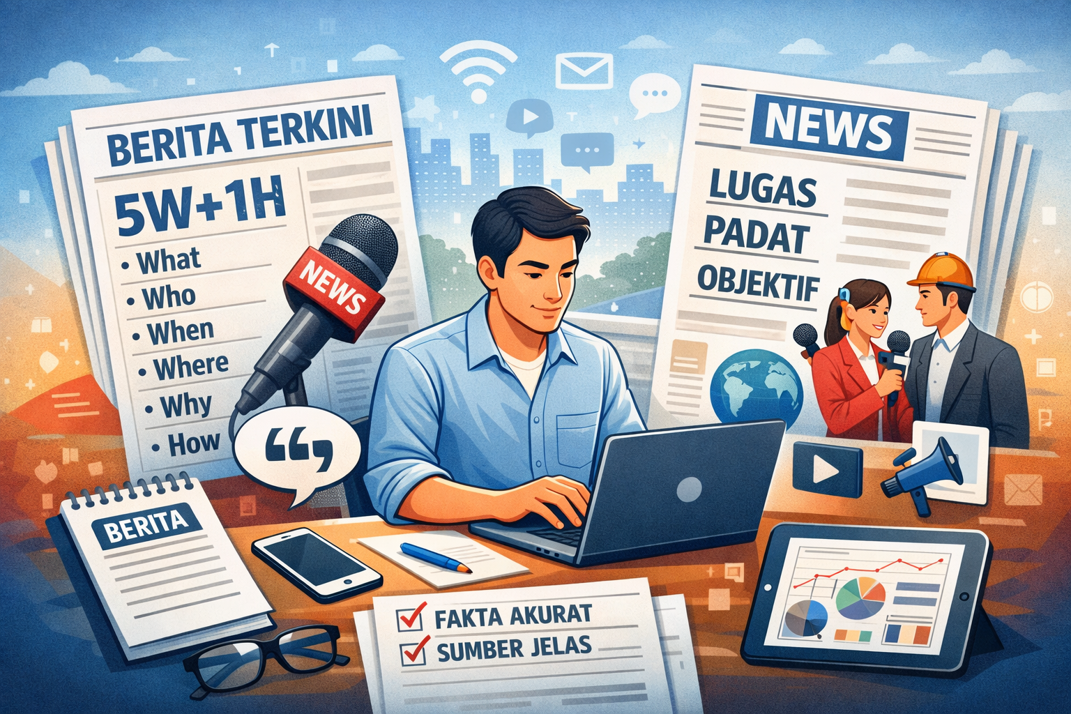 Bahasa berita memiliki peran penting dalam dunia jurnalistik. Melalui bahasa yang tepat, sebuah peristiwa dapat disampaikan secara jelas, singkat, dan mudah dipahami oleh masyarakat luas. Oleh karena itu, jurnalis dituntut mampu menggunakan bahasa berita yang efektif agar informasi yang disampaikan tidak menimbulkan salah tafsir.